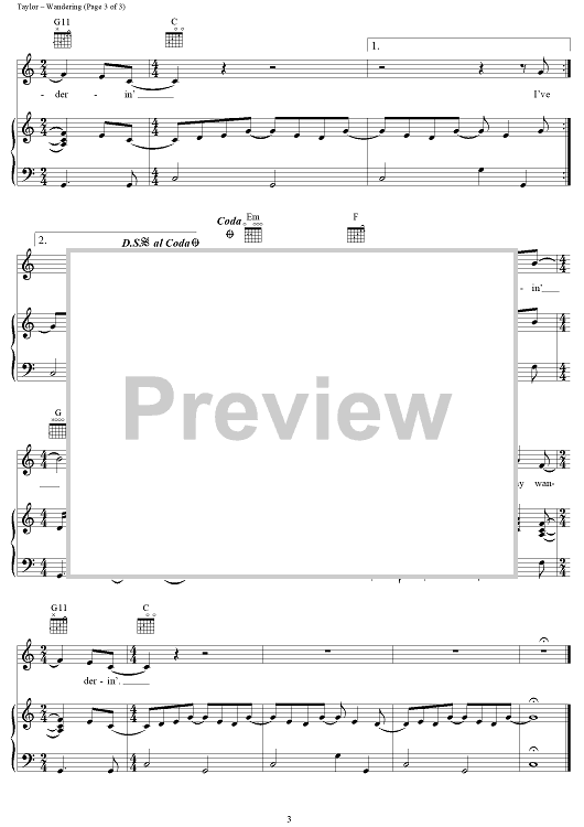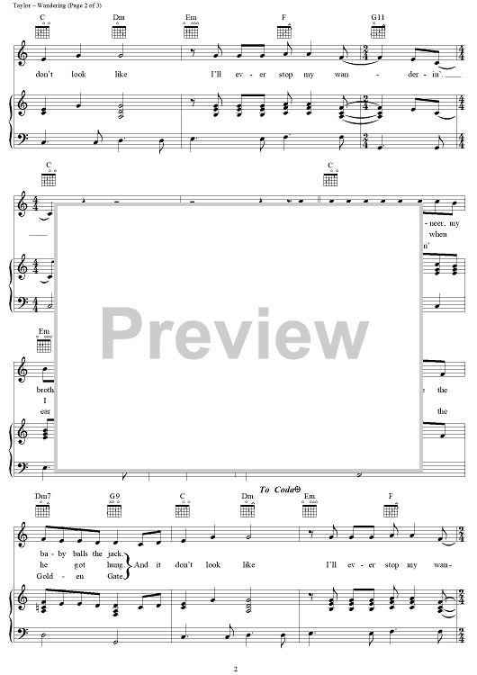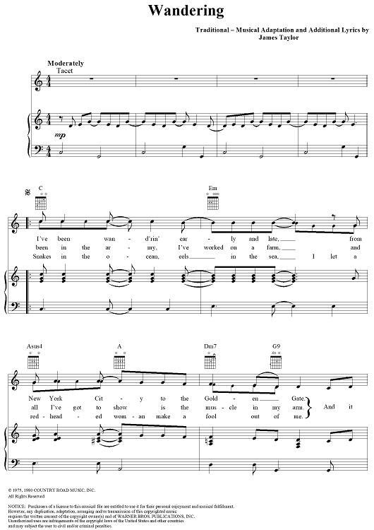 Digital Sheet Music for Wandering by James Taylor, Traditional scored for Piano/Vocal/Chords; id:113078