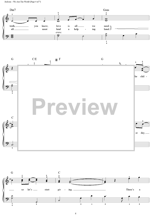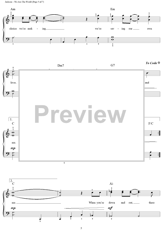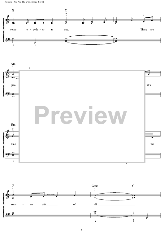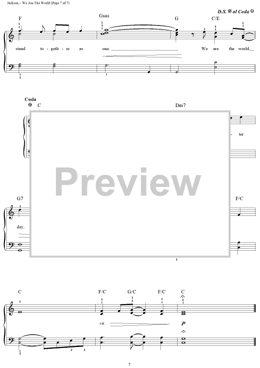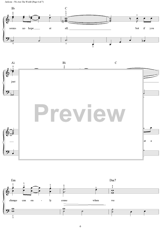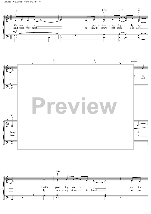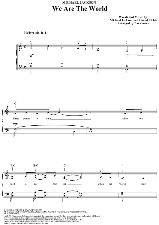 Digital Sheet Music for We Are The World by Dan Coates, Michael Jackson, Lionel Richie scored for Easy Piano/Vocal; id:110931