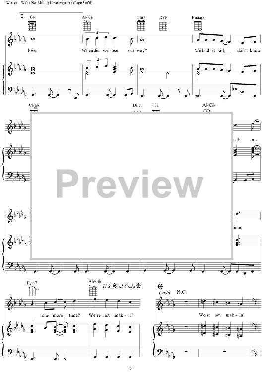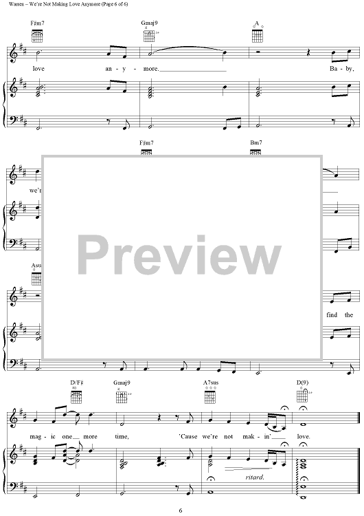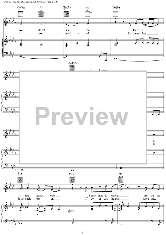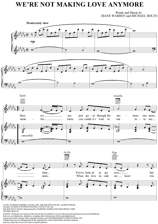Digital Sheet Music for We're Not Making Love Anymore by Diane Warren, Michael Bolton, Barbra Streisand scored for Piano/Vocal/Chords; id:112029