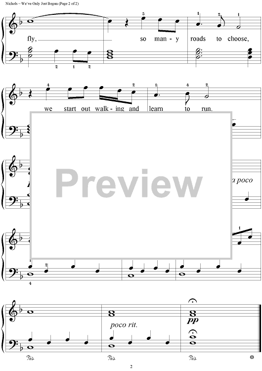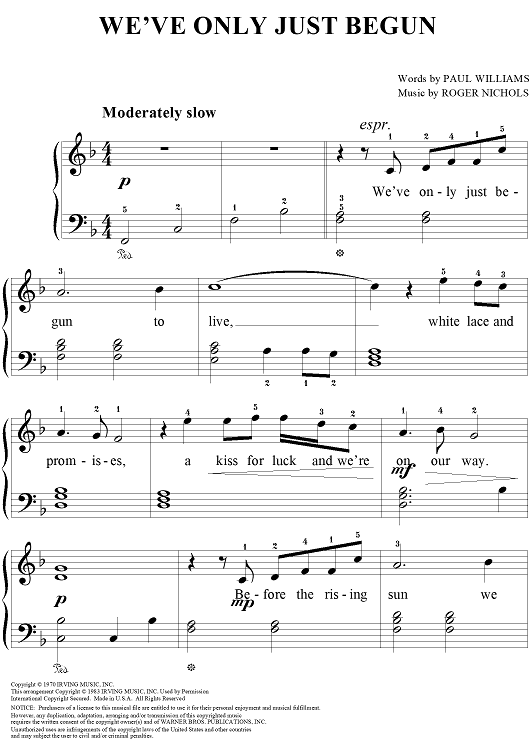 Digital Sheet Music for We've Only Just Begun by The Carpenters, Roger Nichols, Paul Williams scored for Easy Piano/Vocal; id:120422