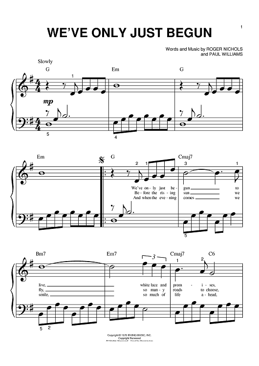 "We've Only Just Begun" Sheet Music by The Carpenters