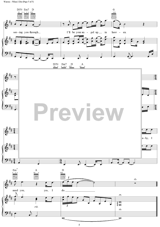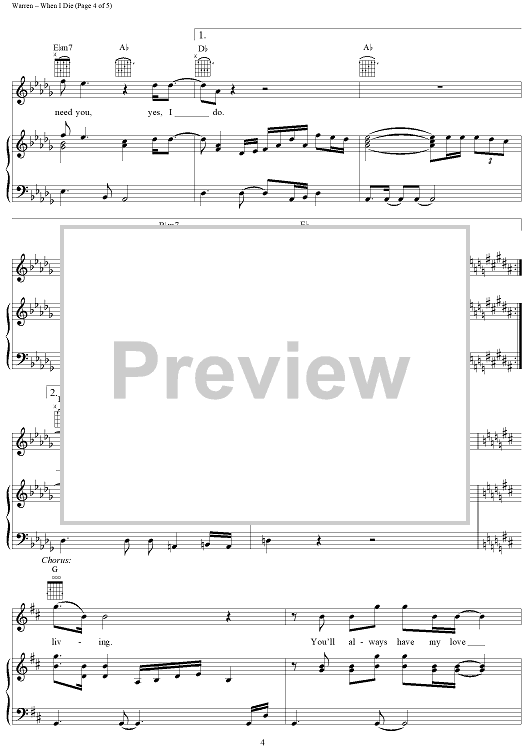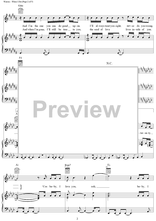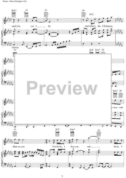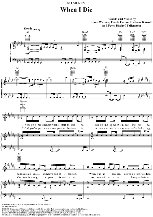Digital Sheet Music for When I Die by Diane Warren, Frank Farian, Dietmar Kawohl, Peter Bischof-Fallenstein, No Mercy scored for Piano/Vocal/Chords; id:111561