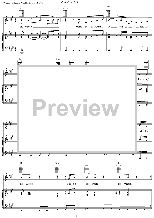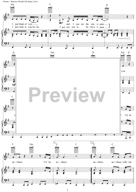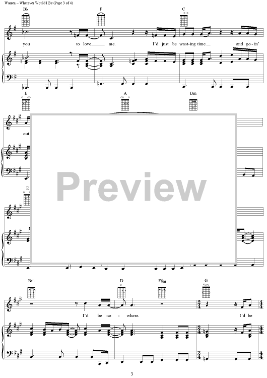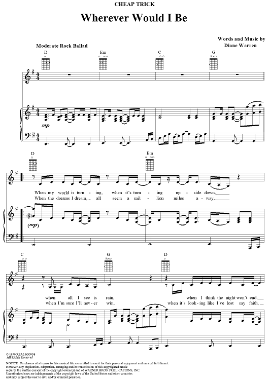Digital Sheet Music for Wherever Would I Be by Diane Warren, Cheap Trick scored for Piano/Vocal/Chords; id:111806