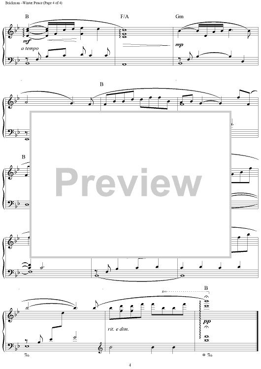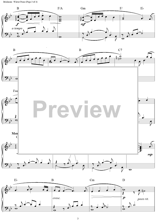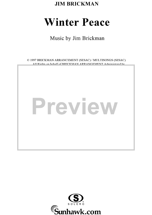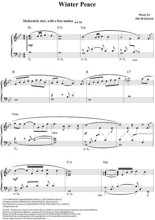 Digital Sheet Music for Winter Peace by Jim Brickman scored for Piano Solo; id:266773