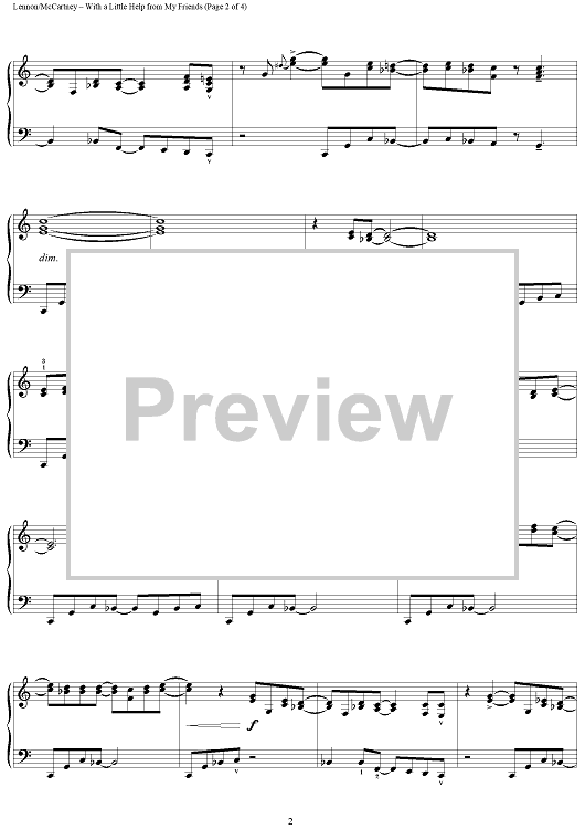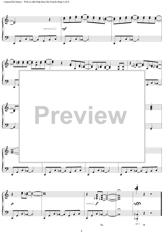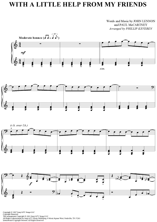 Digital Sheet Music for With a Little Help from My Friends by Paul McCartney, The Beatles, John Lennon, Joe Cocker, Phillip Keveren scored for Piano Solo; id:396548