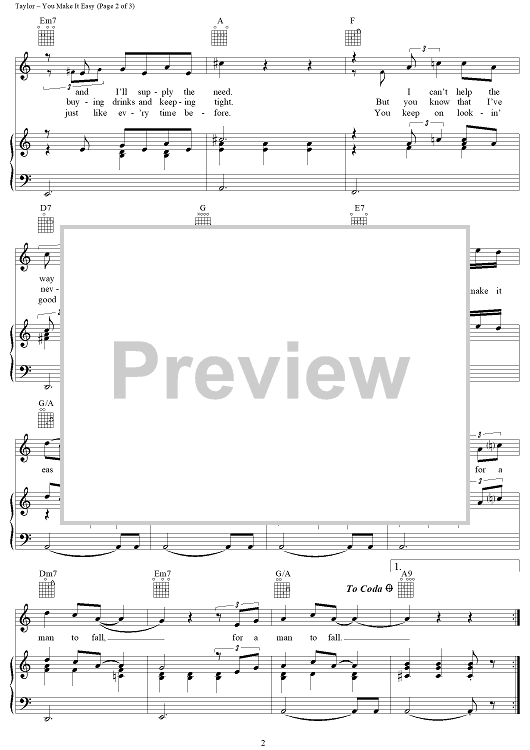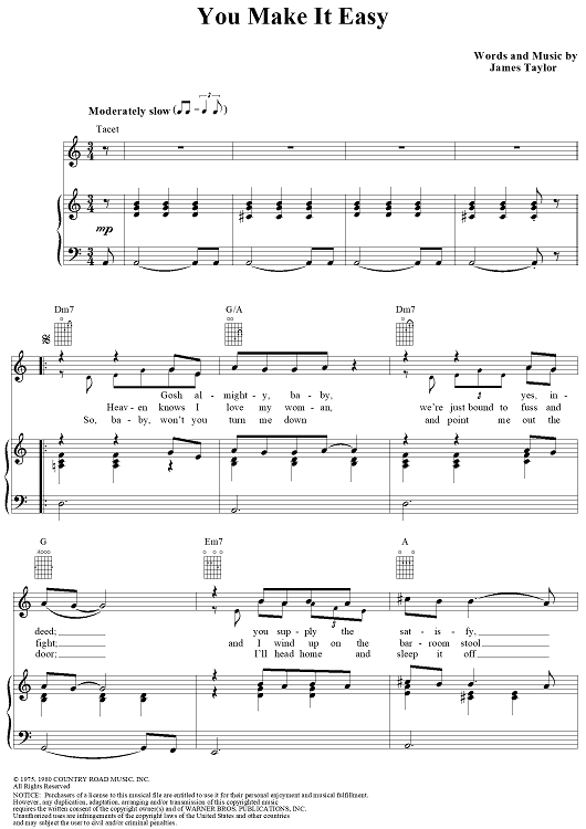 Digital Sheet Music for You Make It Easy by James Taylor scored for Piano/Vocal/Chords; id:111385
