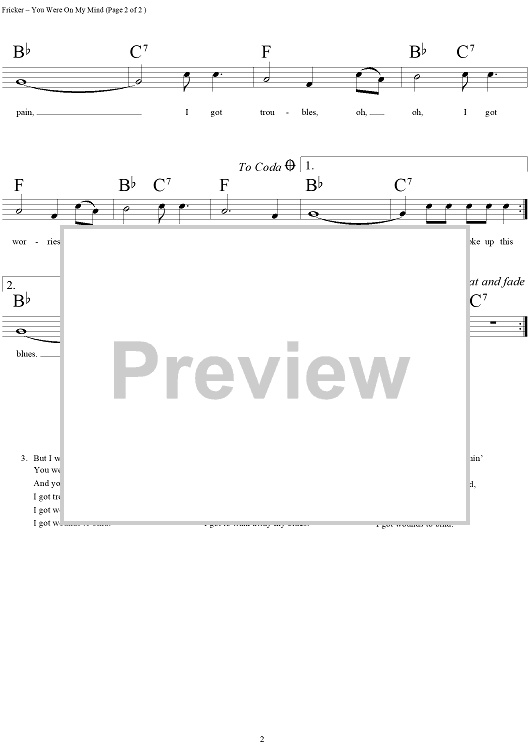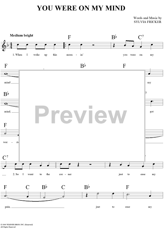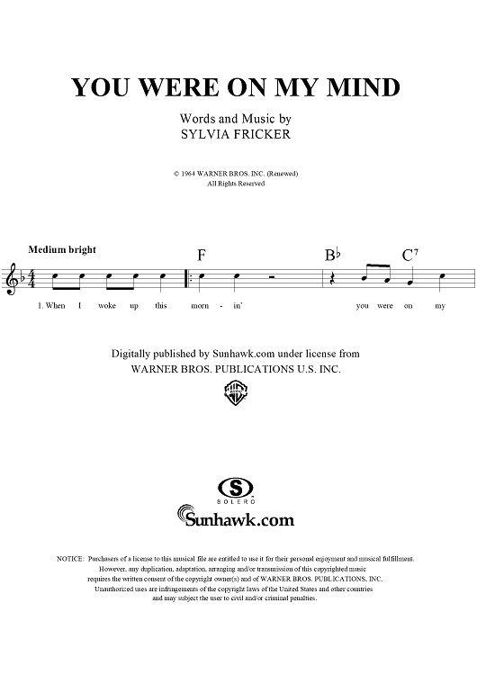 Digital Sheet Music for You Were On My Mind by Nanci Griffith, Sylvia Fricker, We Five, Ian and Sylvia scored for Lead Sheet; id:154853