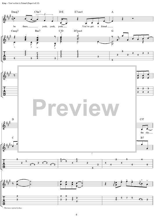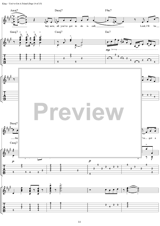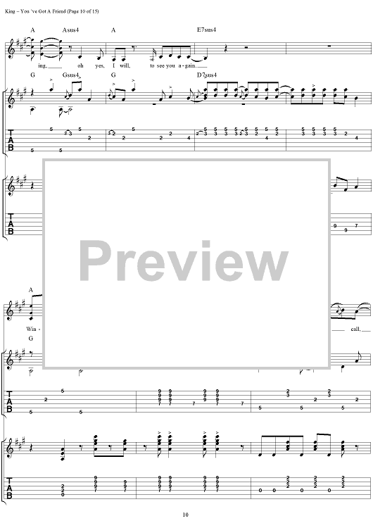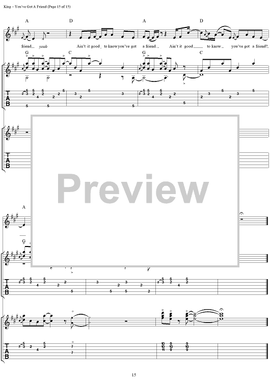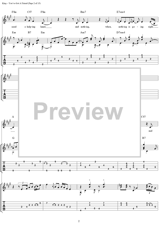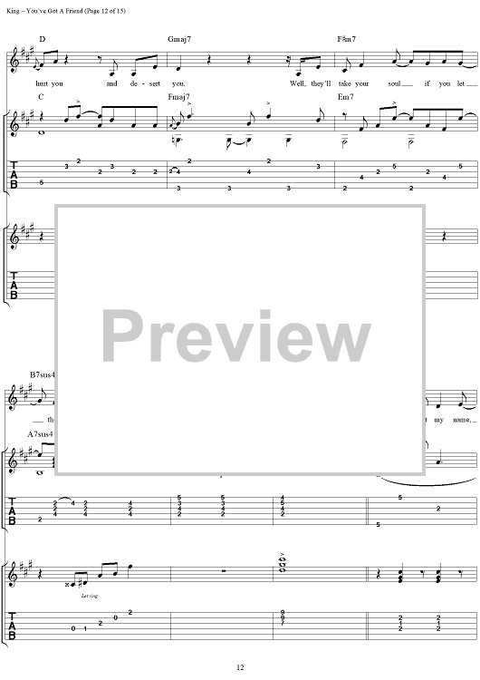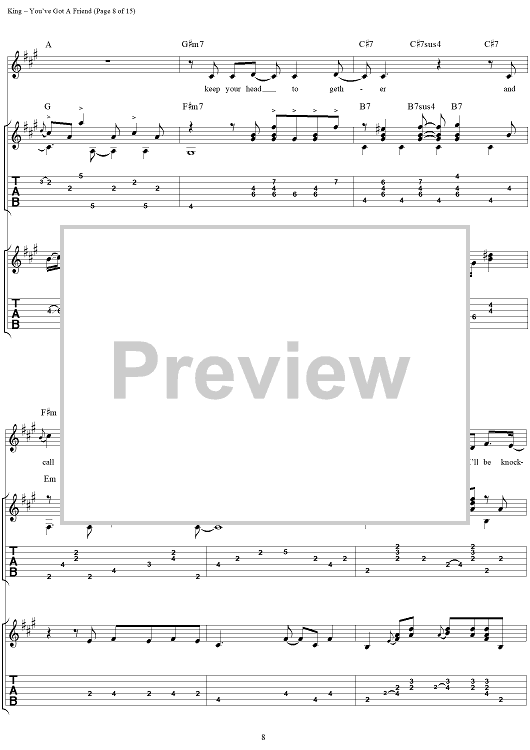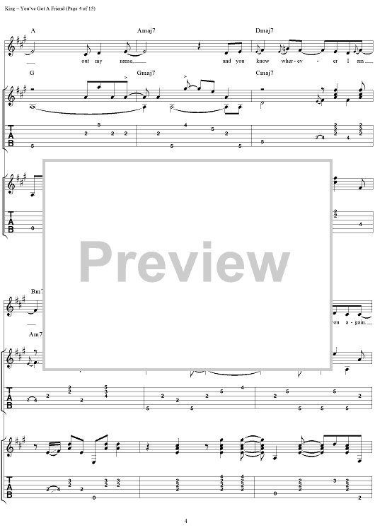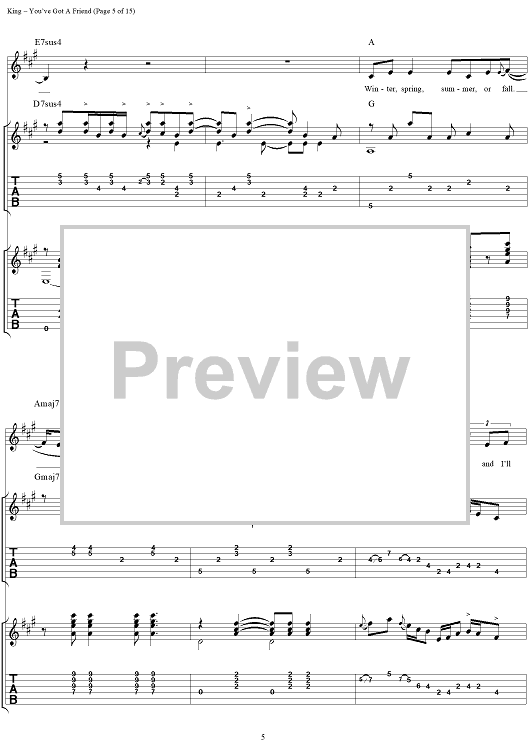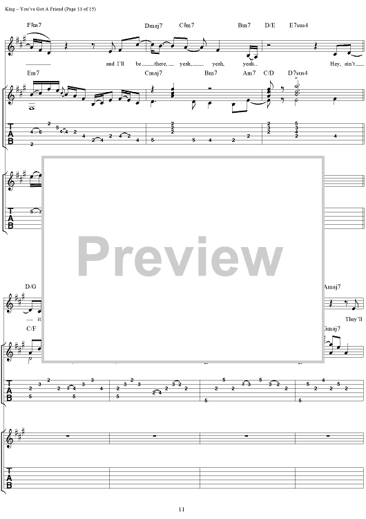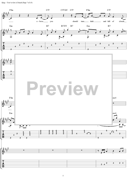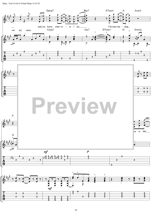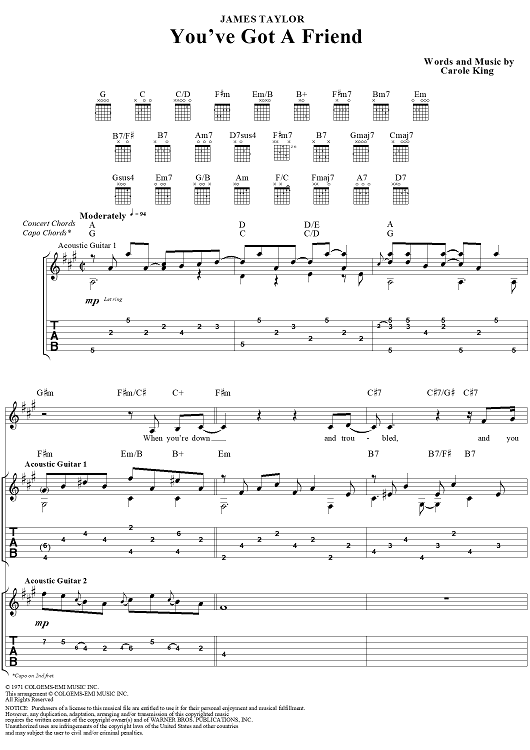 Digital Sheet Music for You've Got A Friend by James Taylor, Carole King scored for Guitar Tab/Vocal; id:111098