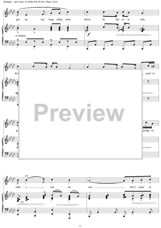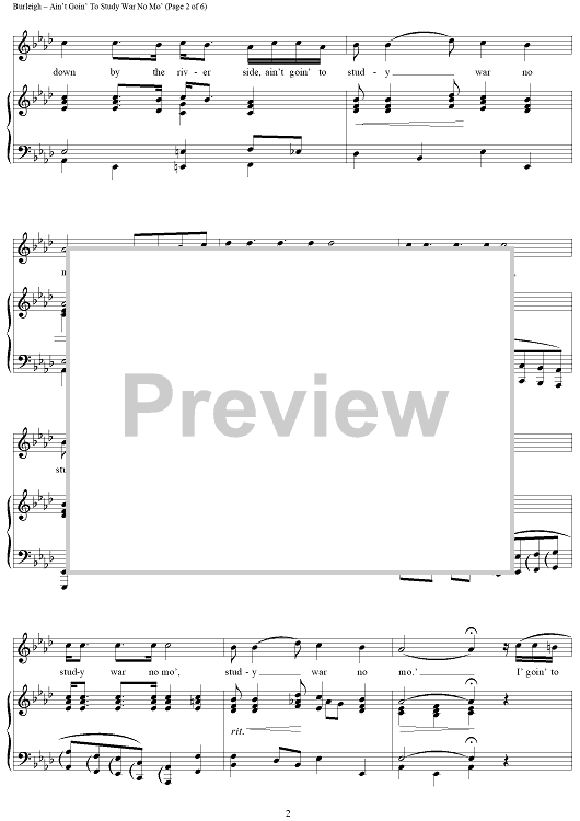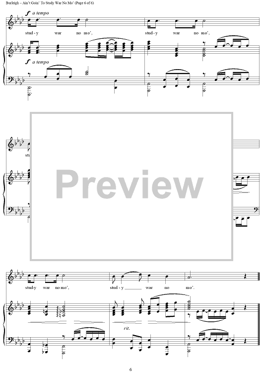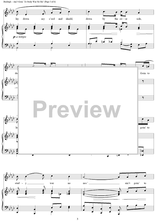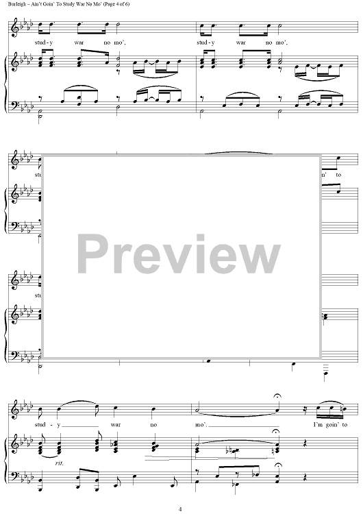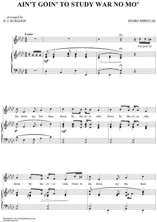Digital Sheet Music for Ain't Goin' To Study War No Mo' by H. T. Burleigh, African American Spiritual scored for Piano/Vocal; id:433128