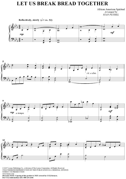 Digital Sheet Music for Let Us Break Bread Together by African American Spiritual, Stan Pethel scored for Piano Solo; id:465578