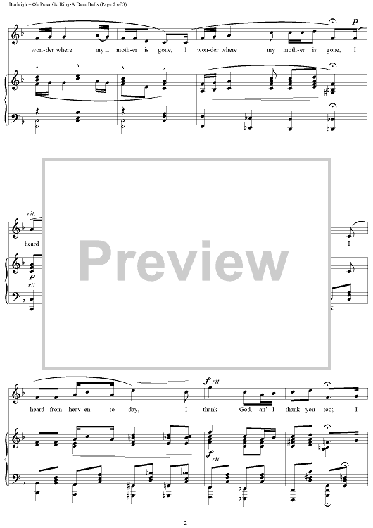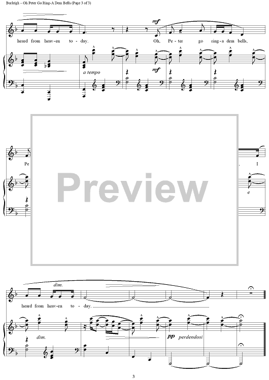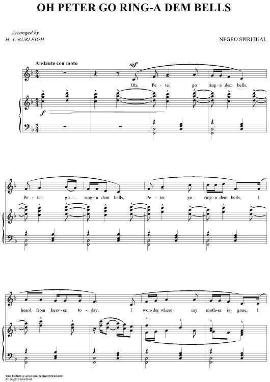 Digital Sheet Music for Oh Peter Go Ring-a Dem Bells by H. T. Burleigh, African American Spiritual scored for Piano/Vocal; id:433698