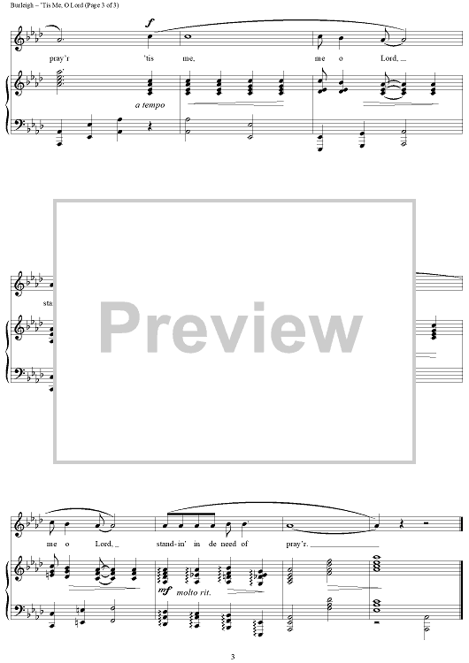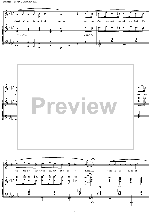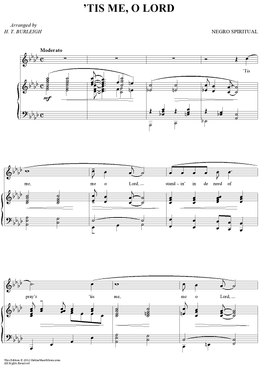 Digital Sheet Music for 'Tis Me, O Lord by H. T. Burleigh, African American Spiritual scored for Piano/Vocal; id:433700
