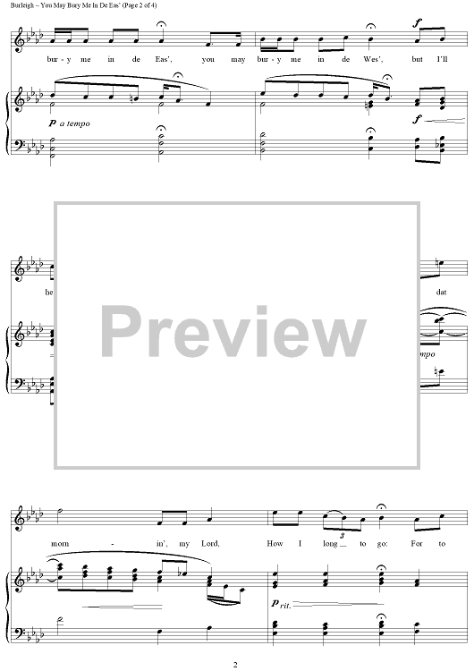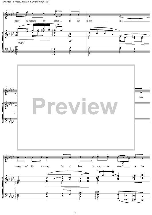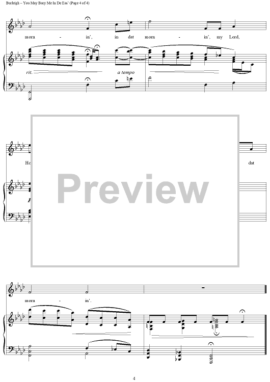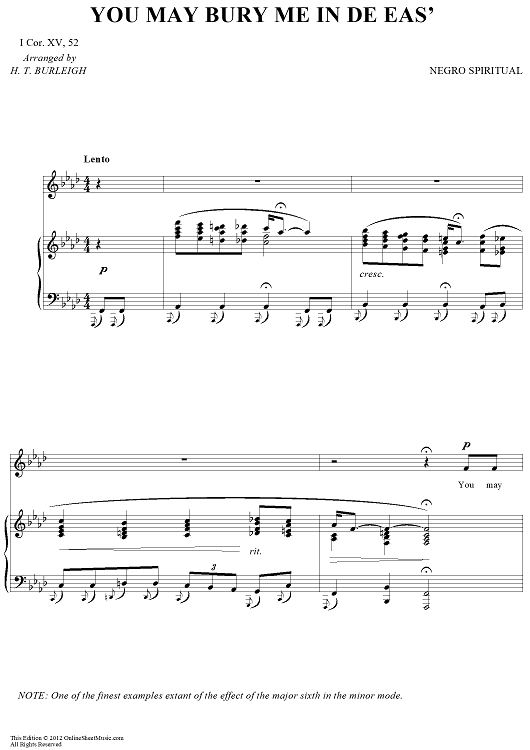Digital Sheet Music for You May Bury Me In De Eas' by H. T. Burleigh, African American Spiritual scored for Piano/Vocal; id:433703