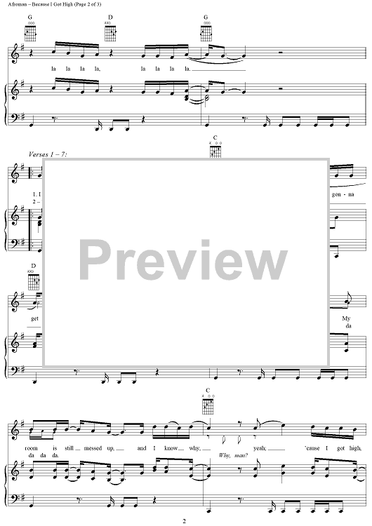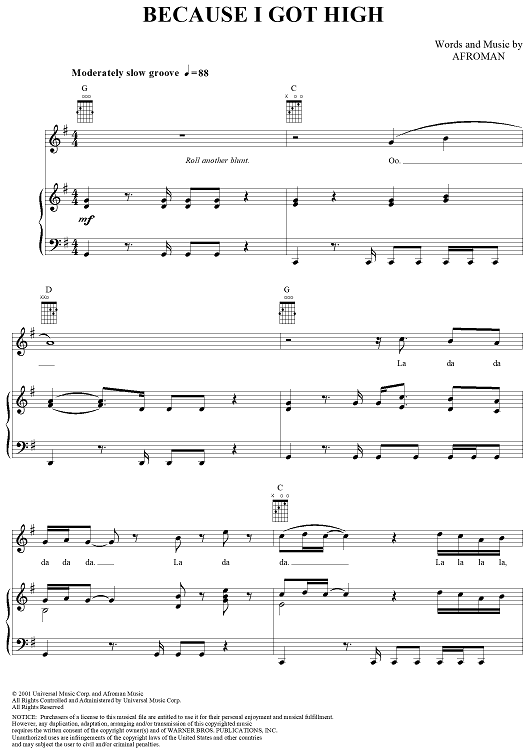 Digital Sheet Music for Because I Got High by Afroman scored for Piano/Vocal/Chords; id:284446