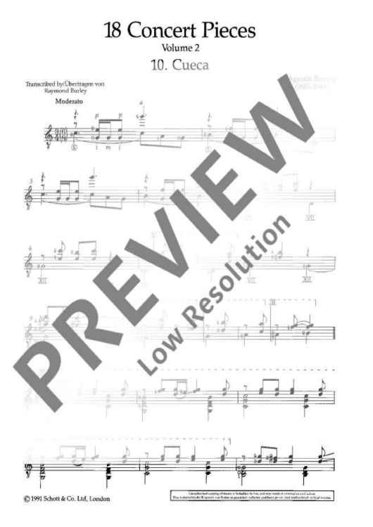 Only few original manuscripts of Barrios' compositions (about 300) have survived, but fortunately he made more than 30 sound recordings. Containing 18 concert pieces by Agustín Barrios-Mangoré, this edition is the result of listening to sound recordings of the composer and of the experience of the arranger, R. Burley, with this music in concert performances.