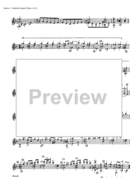 Digital Sheet Music for Capricho Espanol by Agustin Barrios Mangore scored for Guitar Solo; id:454356