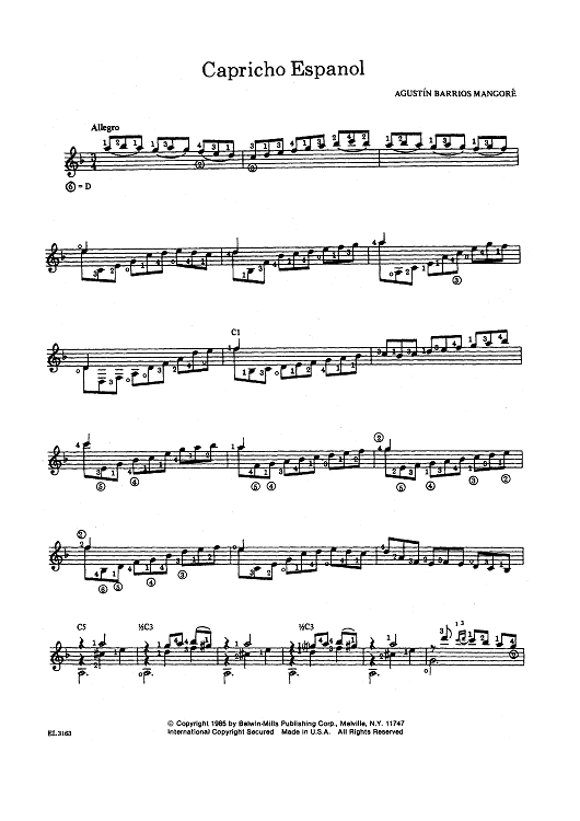 "Capricho Espanol" Sheet Music by Agustin Barrios Mangore