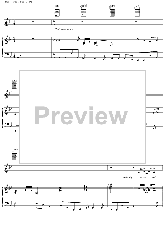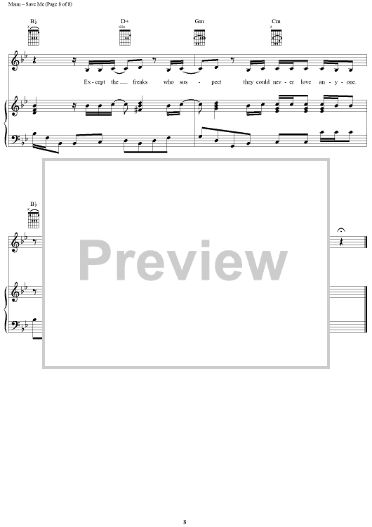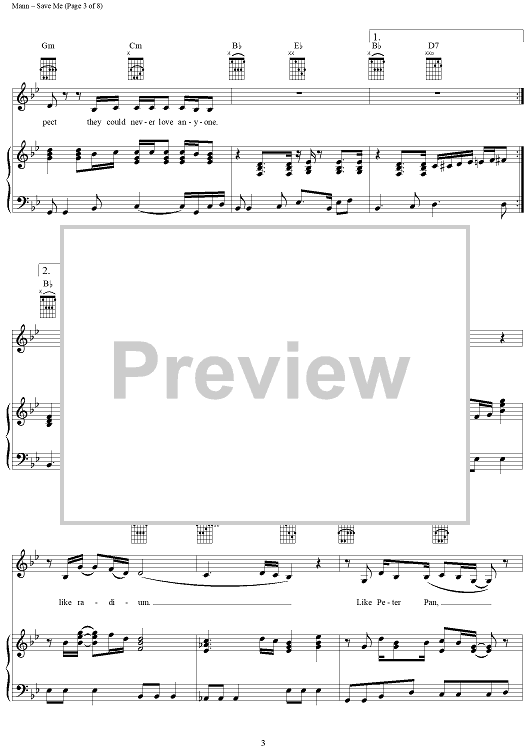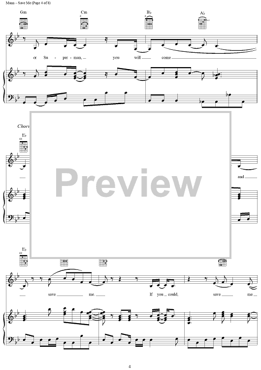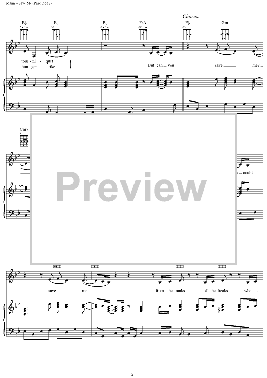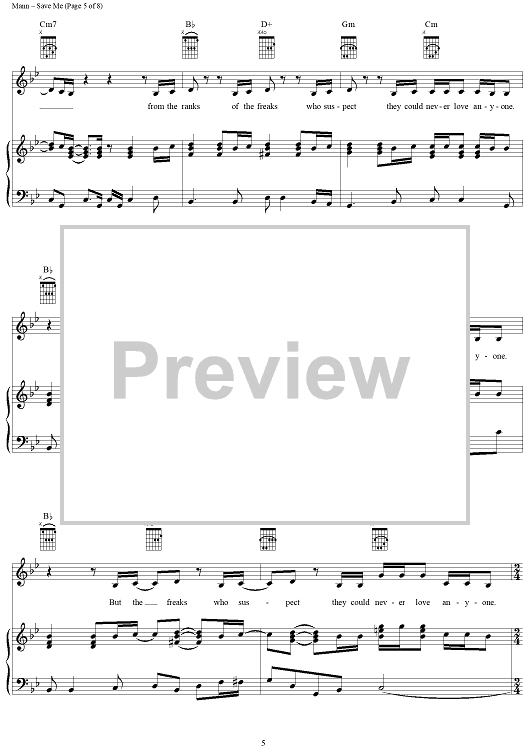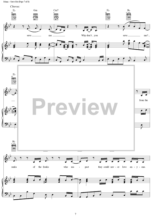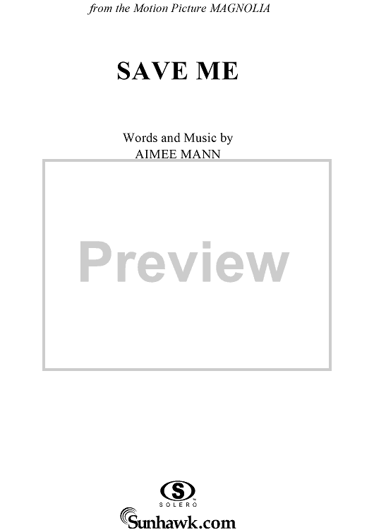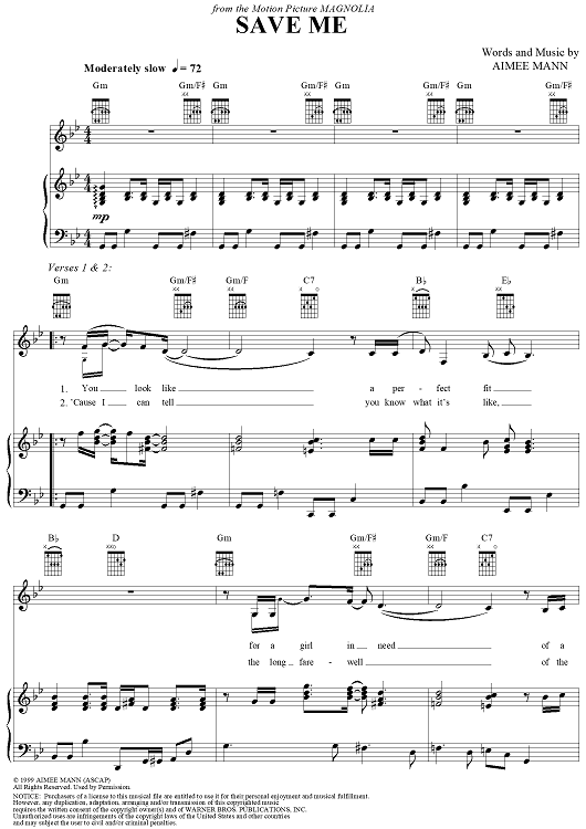 Digital Sheet Music for Save Me by Aimee Mann scored for Piano/Vocal/Chords; id:191167