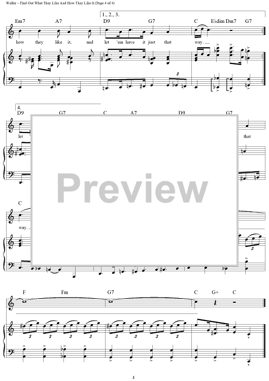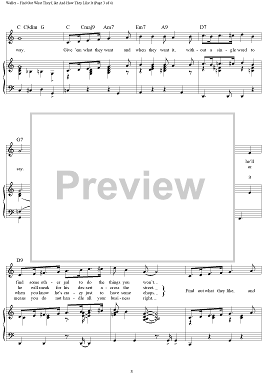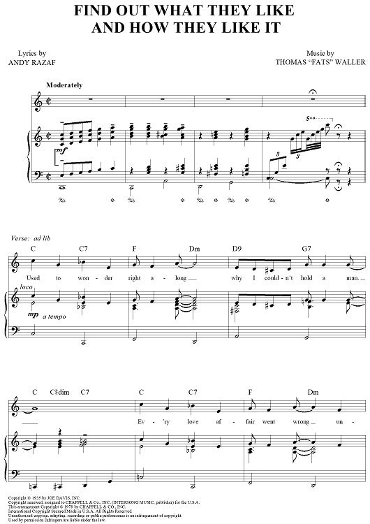 Digital Sheet Music for Find Out What They Like And How they Like It by Fats Waller, Andy Razaf scored for Piano/Vocal/Chords; id:437840