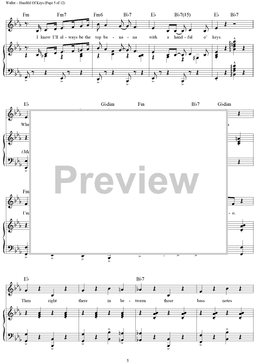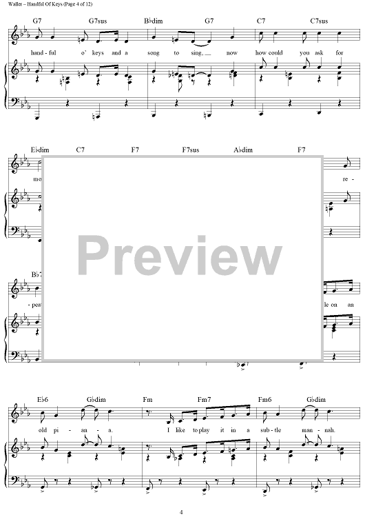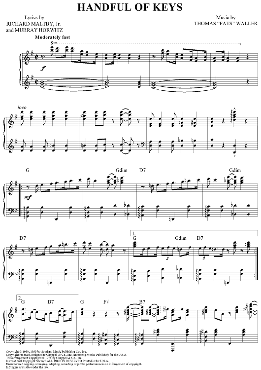 Digital Sheet Music for Handful Of Keys by Fats Waller, Richard Maltby Jr., Murray Horwitz scored for Piano/Vocal/Chords; id:438109