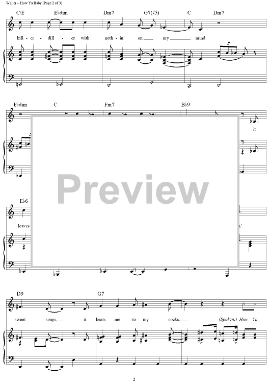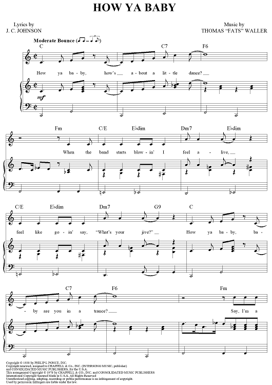 Digital Sheet Music for How Ya Baby by Fats Waller, J. C. Johnson scored for Piano/Vocal/Chords; id:437939