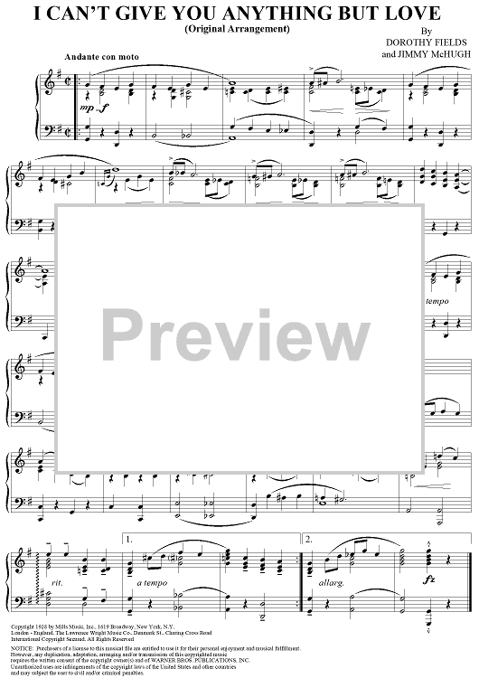 Digital Sheet Music for I Can't Give You Anything But Love (Original) by Fats Waller, Dorothy Fields, Jimmy McHugh scored for Piano Solo; id:313664