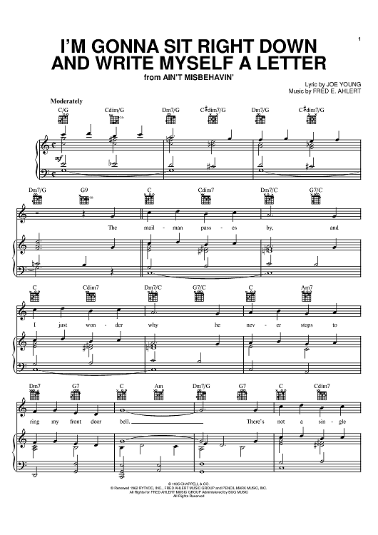 Digital Sheet Music for I'm Gonna Sit Right Down And Write Myself A Letter by Fred Ahlert, Willie Nelson, Joseph Young scored for Piano/Vocal/Chords; id:381875