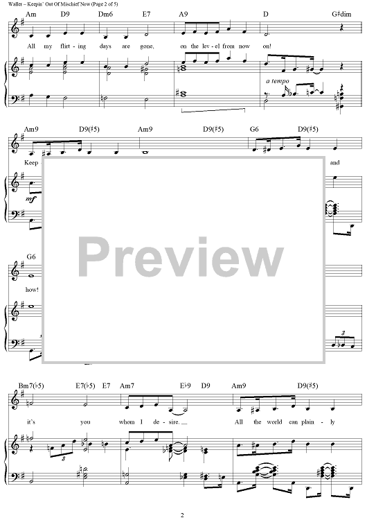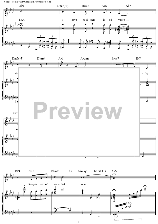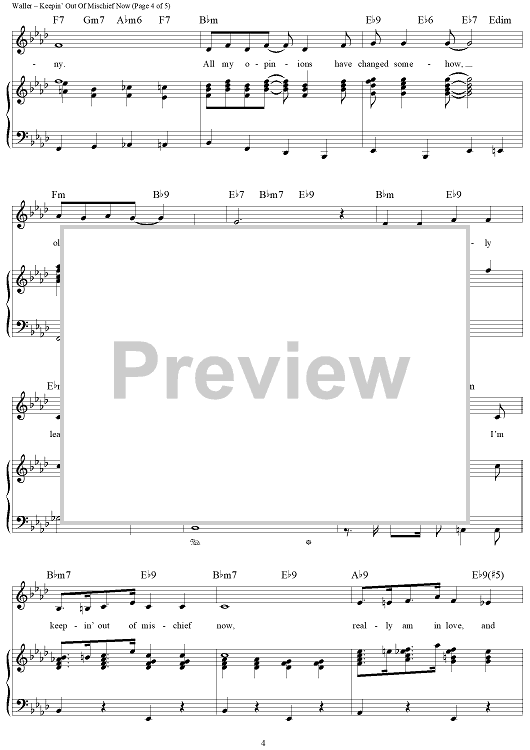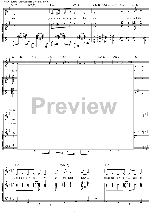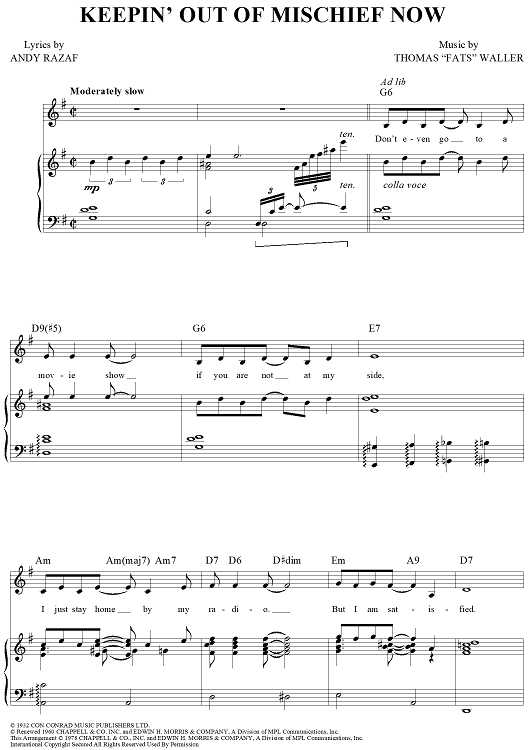 Digital Sheet Music for Keepin' Out Of Mischief Now by Fats Waller, Andy Razaf scored for Piano/Vocal/Chords; id:437841