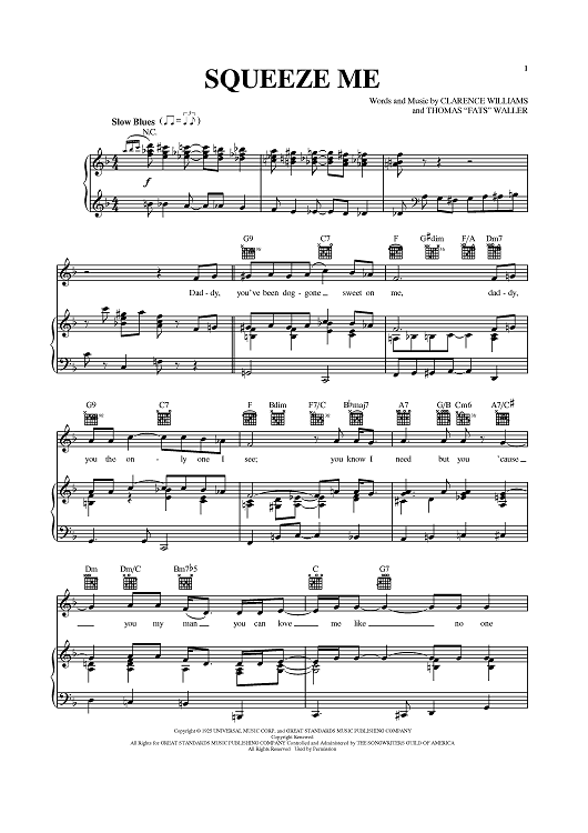 Digital Sheet Music for Squeeze Me by Bessie Smith, Louis Armstrong, Fats Waller, Mildred Bailey, Clarence Williams scored for Piano/Vocal/Chords; id:388869