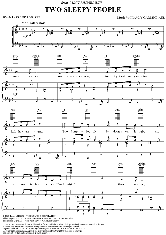 Digital Sheet Music for Two Sleepy People by Hoagy Carmichael, Frank Loesser scored for Piano/Vocal/Chords; id:273582