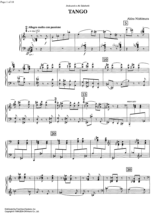 Digital Sheet Music for Tango by , Akira Nishimura scored for Piano Solo; id:337741