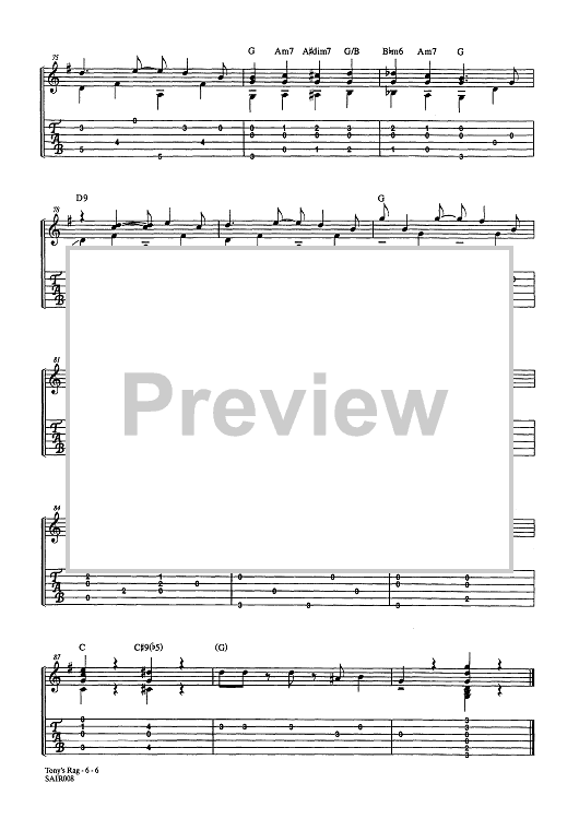 Digital Sheet Music for Tony's Rag - No MP3 by , Al Petteway scored for Guitar Tab; id:450799