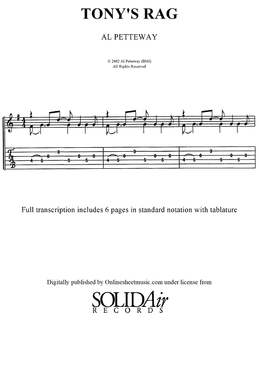 "Tony's Rag - No MP3" Sheet Music by Al Petteway