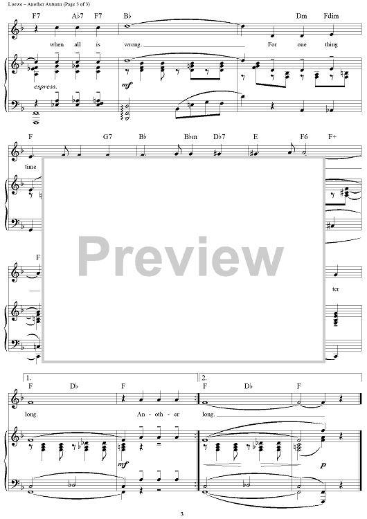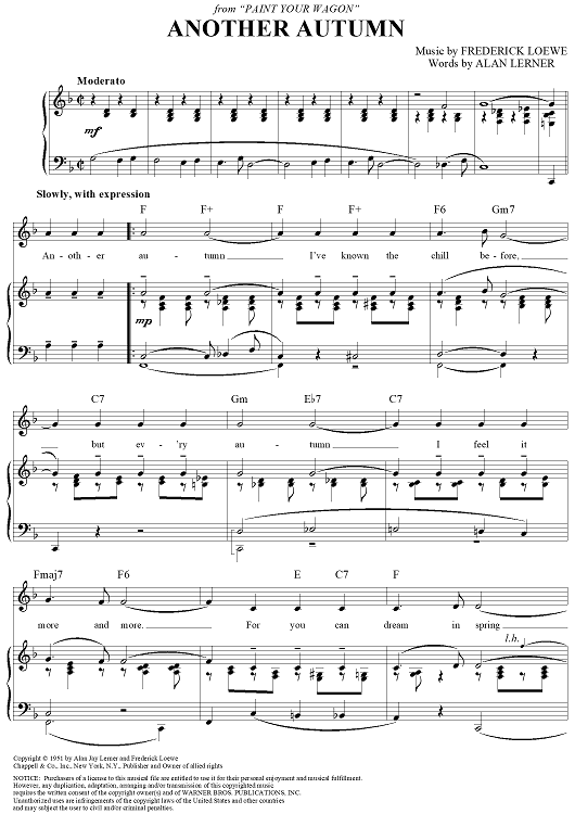 Digital Sheet Music for Another Autumn by Frederick Loewe, Alan Jay Lerner scored for Piano/Vocal/Chords; id:314327