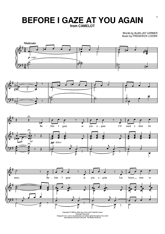Digital Sheet Music for Before I Gaze At You Again by Frederick Loewe, Alan Jay Lerner, Joan Frey Boytim scored for Piano/Vocal/Chords; id:402374