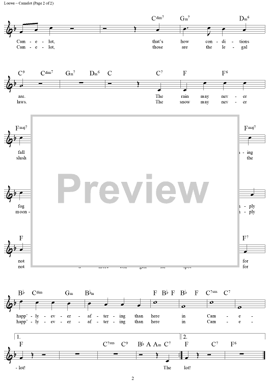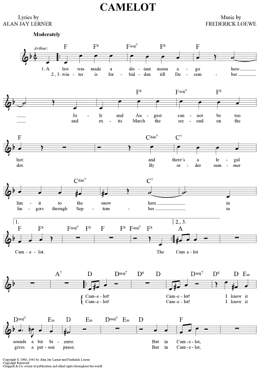 Digital Sheet Music for Camelot by Frederick Loewe, Alan Jay Lerner scored for Lead Sheet; id:441797