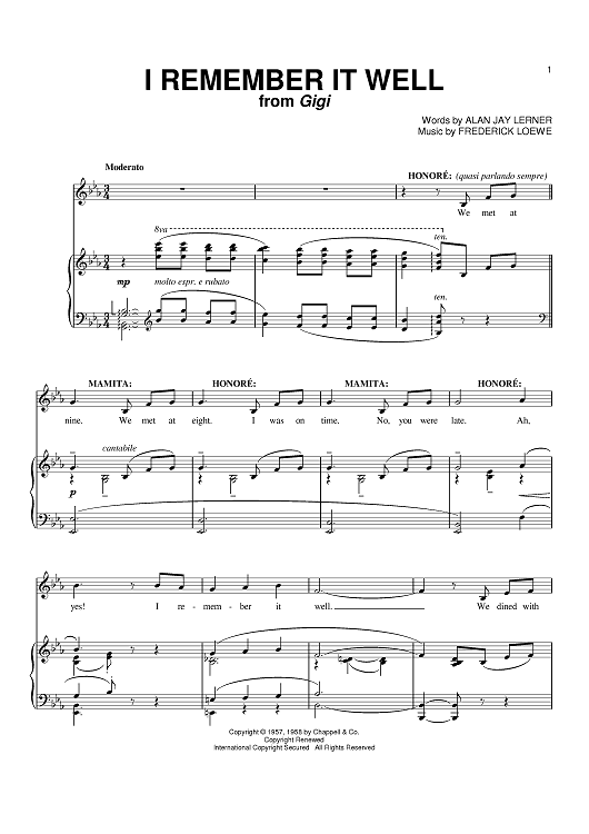 "I Remember It Well" Sheet Music by Frederick Loewe