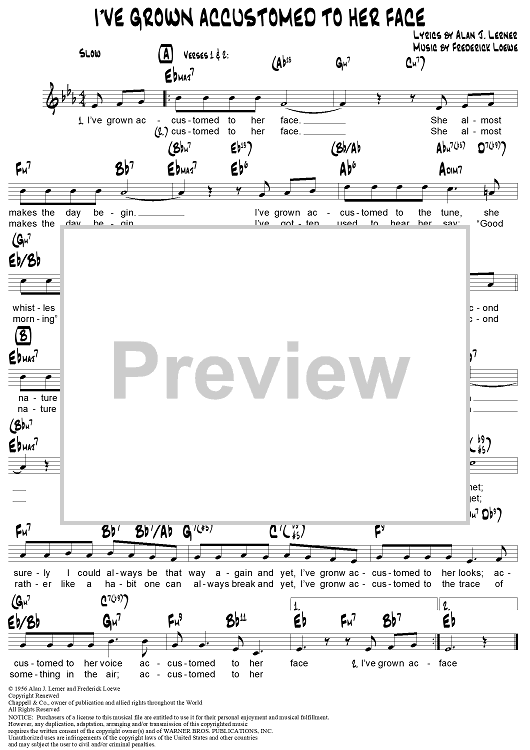 Digital Sheet Music for I've Grown Accustomed to Her Face by Frederick Loewe, Alan Jay Lerner scored for Lead Sheet; id:315464