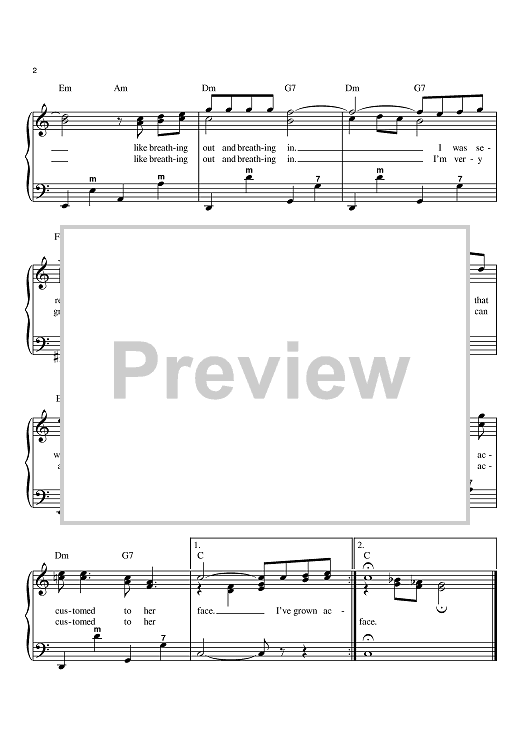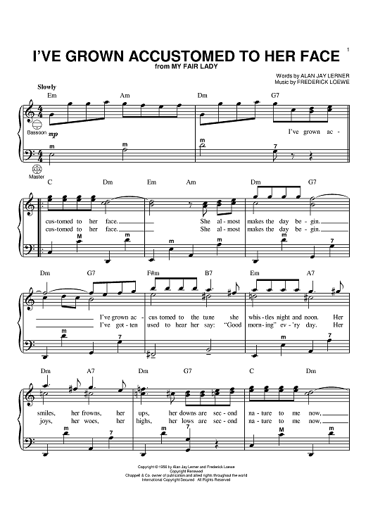 Digital Sheet Music for I've Grown Accustomed To Her Face by Frederick Loewe, Alan Jay Lerner, Gordon MacRae, Rosemary Clooney scored for Easy Piano; id:381020