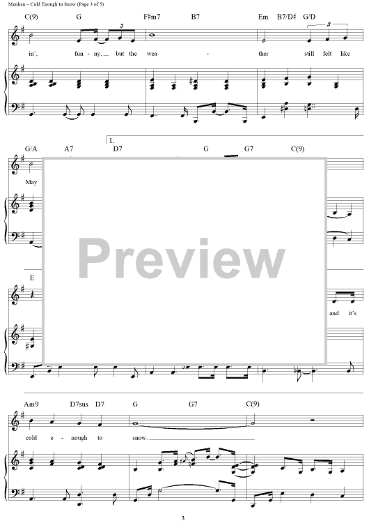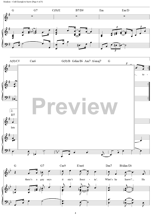 Digital Sheet Music for Cold Enough to Snow by Alan Menken, Stephen Schwartz scored for Piano/Vocal/Chords; id:288138