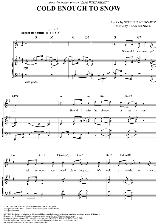"Cold Enough to Snow" Sheet Music by Alan Menken