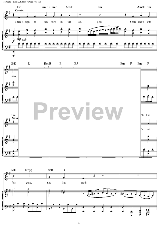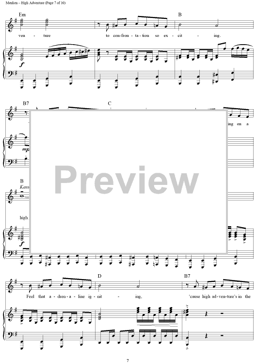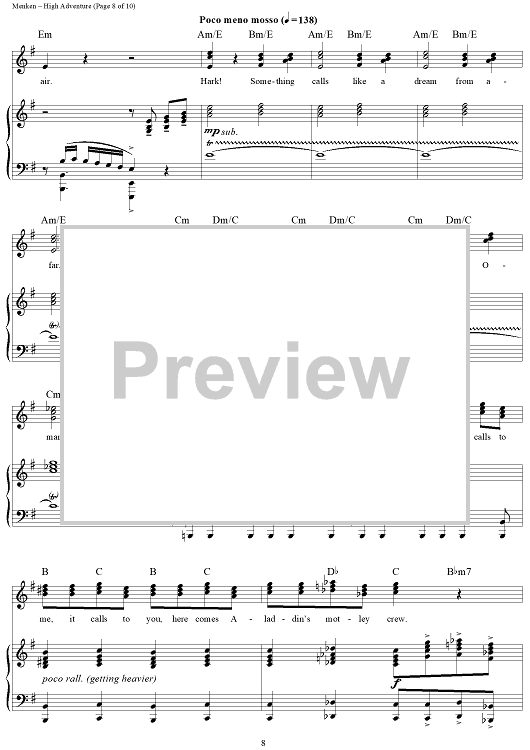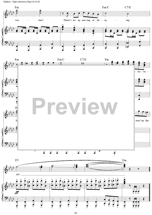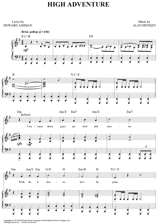 Digital Sheet Music for High Adventure by Alan Menken, Howard Ashman scored for Piano/Vocal/Chords; id:449257