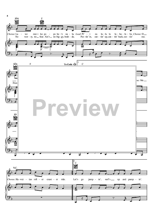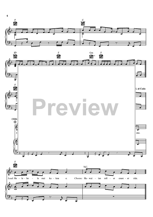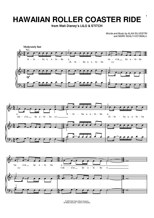 Digital Sheet Music for Hawaiian Roller Coaster Ride by Alan Silvestri, Mark Keali'i Ho'omalu scored for Piano/Vocal/Chords; id:369043
