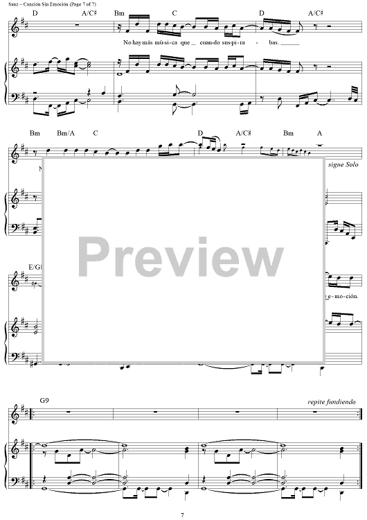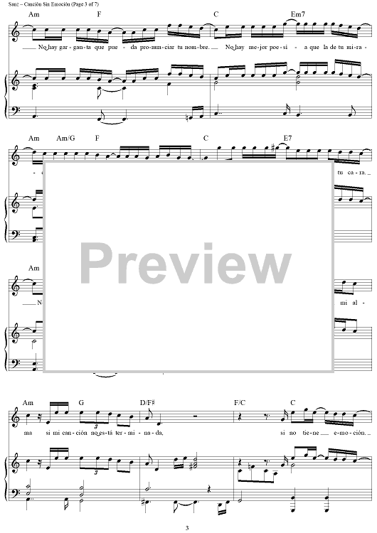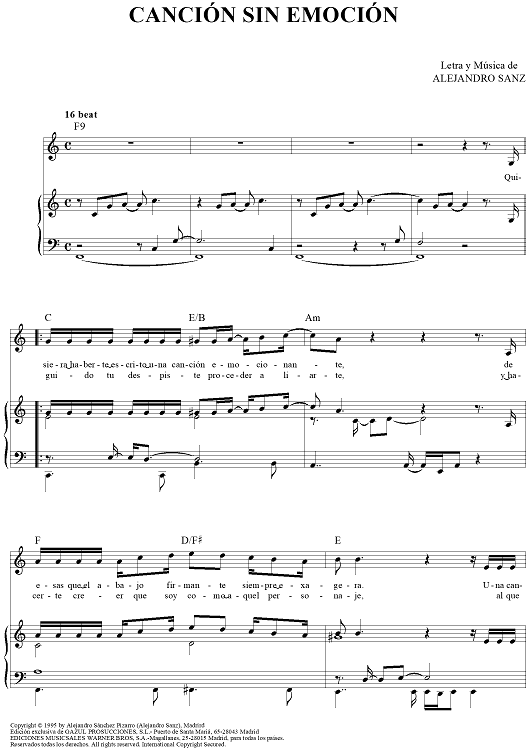 "Canción Sin Emoción" Sheet Music by Alejandro Sanz