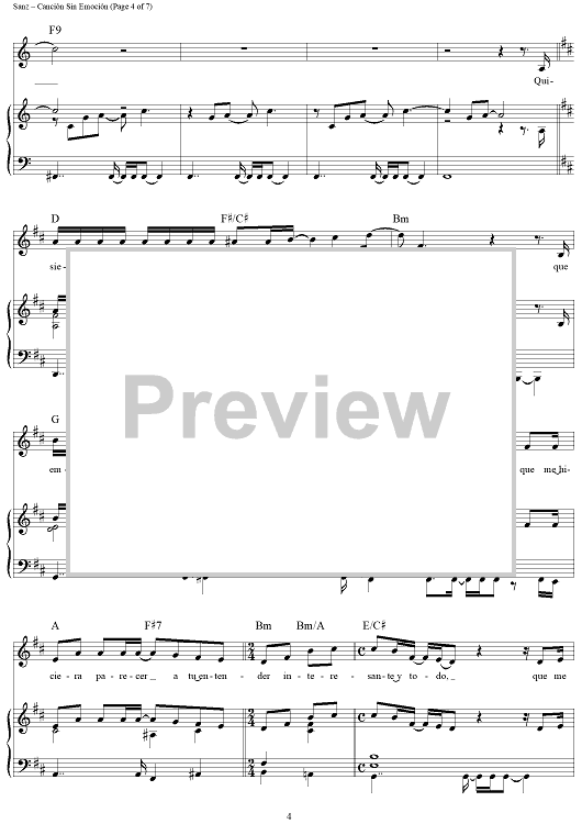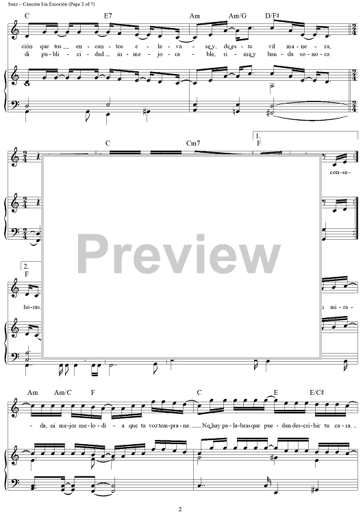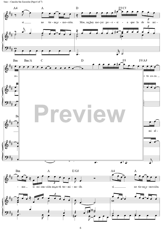 Digital Sheet Music for Canción Sin Emoción by Alejandro Sanz scored for Piano/Vocal/Chords; id:441522