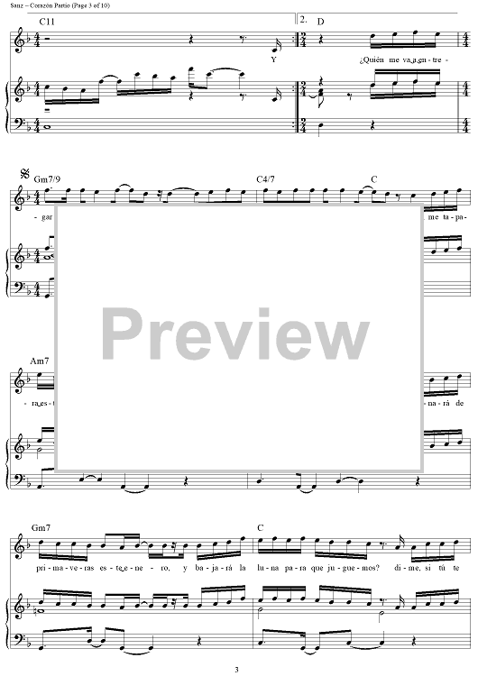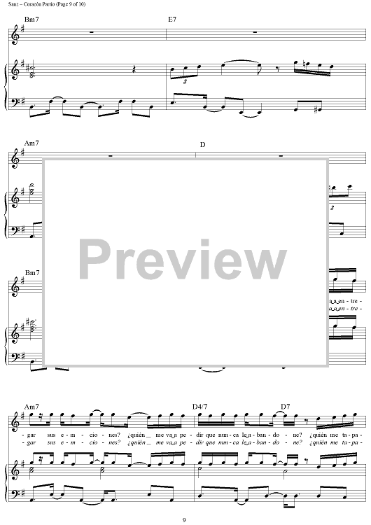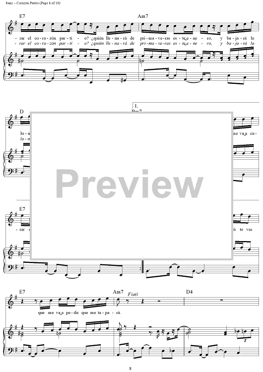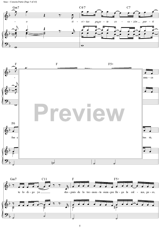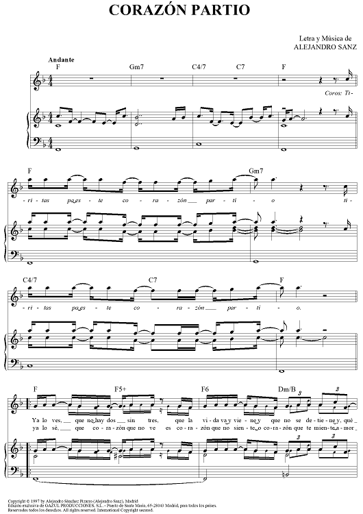 Digital Sheet Music for Corazón Partío by Alejandro Sanz scored for Piano/Vocal/Chords; id:290073