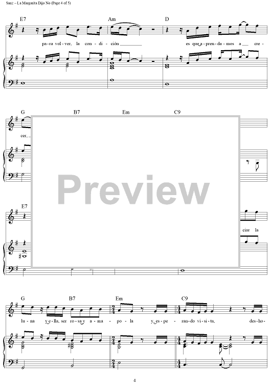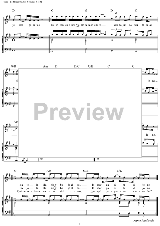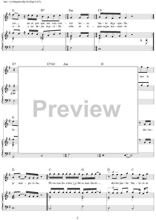 Digital Sheet Music for La Margarita Dijo No by Alejandro Sanz scored for Piano/Vocal/Chords; id:442071