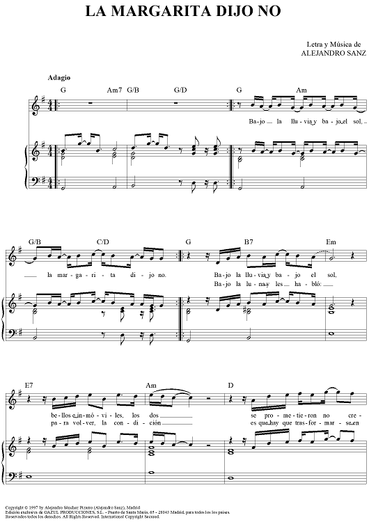 "La Margarita Dijo No" Sheet Music by Alejandro Sanz