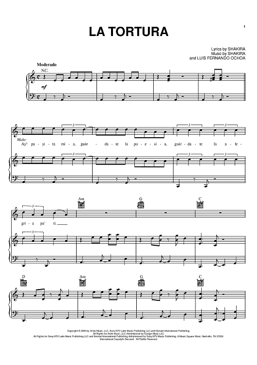Digital Sheet Music for La Tortura by Alejandro Sanz, Shakira, Luis Fernando Ochoa scored for Piano/Vocal/Chords; id:387212