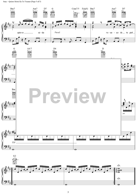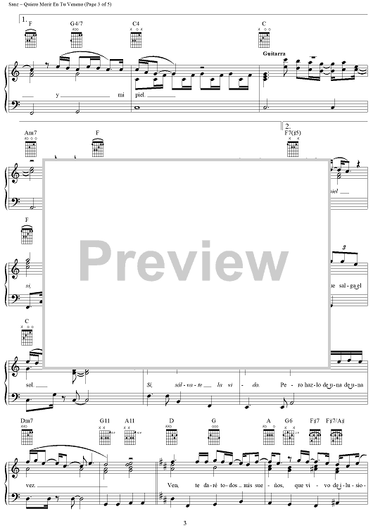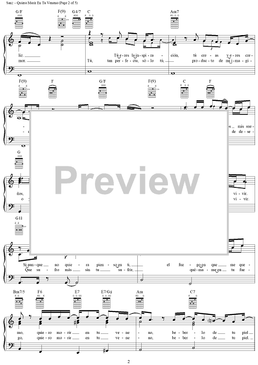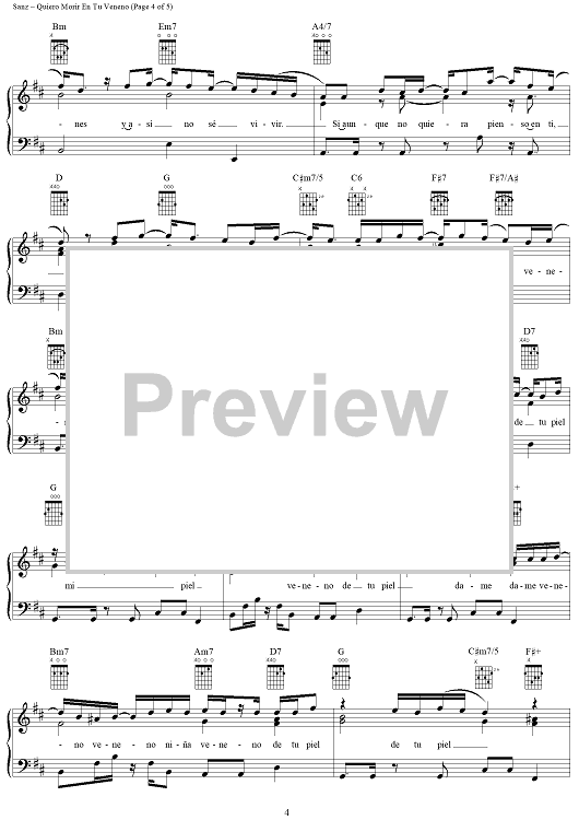 Digital Sheet Music for Quiero Morir En Tu Veneno by Alejandro Sanz scored for Piano/Vocal/Chords; id:290076